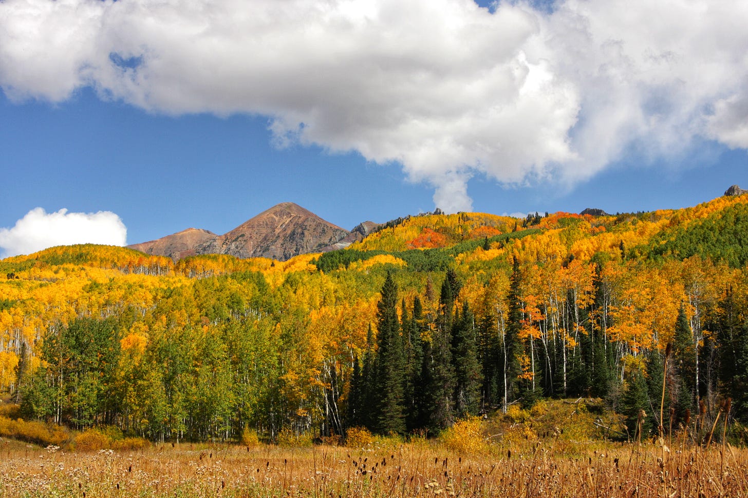 “About as close as you can get to wilderness through a windshield,” an early pitch for the West Elk Scenic Byway claimed about this route routinely featured on Best Fall Drives lists that appear each year, as we anticipate “Color Sunday.” Although a made-up day, the last Sunday of Septe…