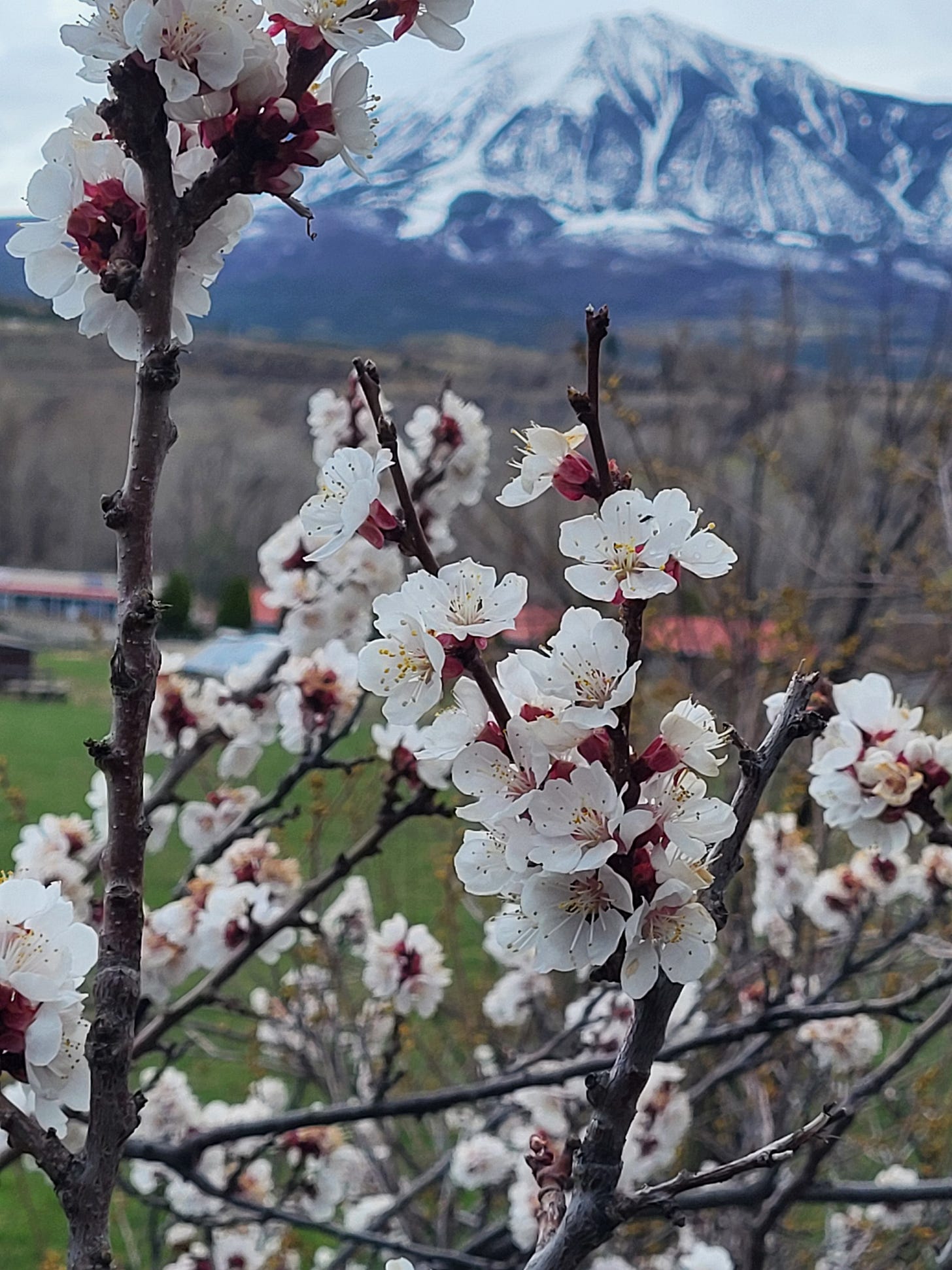It is the Spring Equinox, however, and my apricot tree is humming with bees glad to get an early taste. My backyard neighbor, an orchardist, worries about seeing everything bloom open in March— one freeze and the fruit set could be gone. I irrigate from a ditch, and my drinking water comes from springs high on Grand Mesa across the road from my house. My neighbors are all talking about drought.